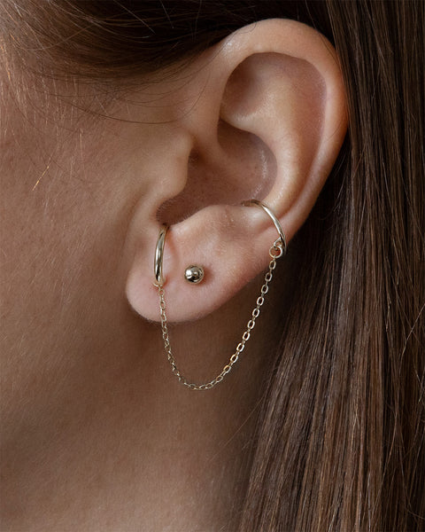 From The Silver Standard set, wear the Ball Studs on the first piercing and the Huggie Studs on the second piercing (as suspenders). This look keeps it minimal, yet interesting.