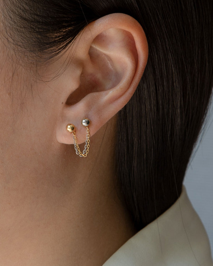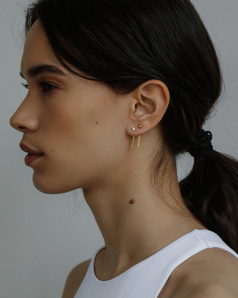 There's no easier style hack than wearing your studs on repeat since all our designs comes in pairs. If you're craving a little more, add an ear jacket to your second piercing and keep the first one minimal. This small shift in placement creates an unexpected look.