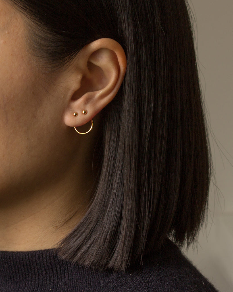 Here we paired two Ball Studs with the Circle Hoop Ear Jackets (worn behind the lobe from the second piercing) - dubbed the Smiley Face look by our community of earring capsule enthusiasts.