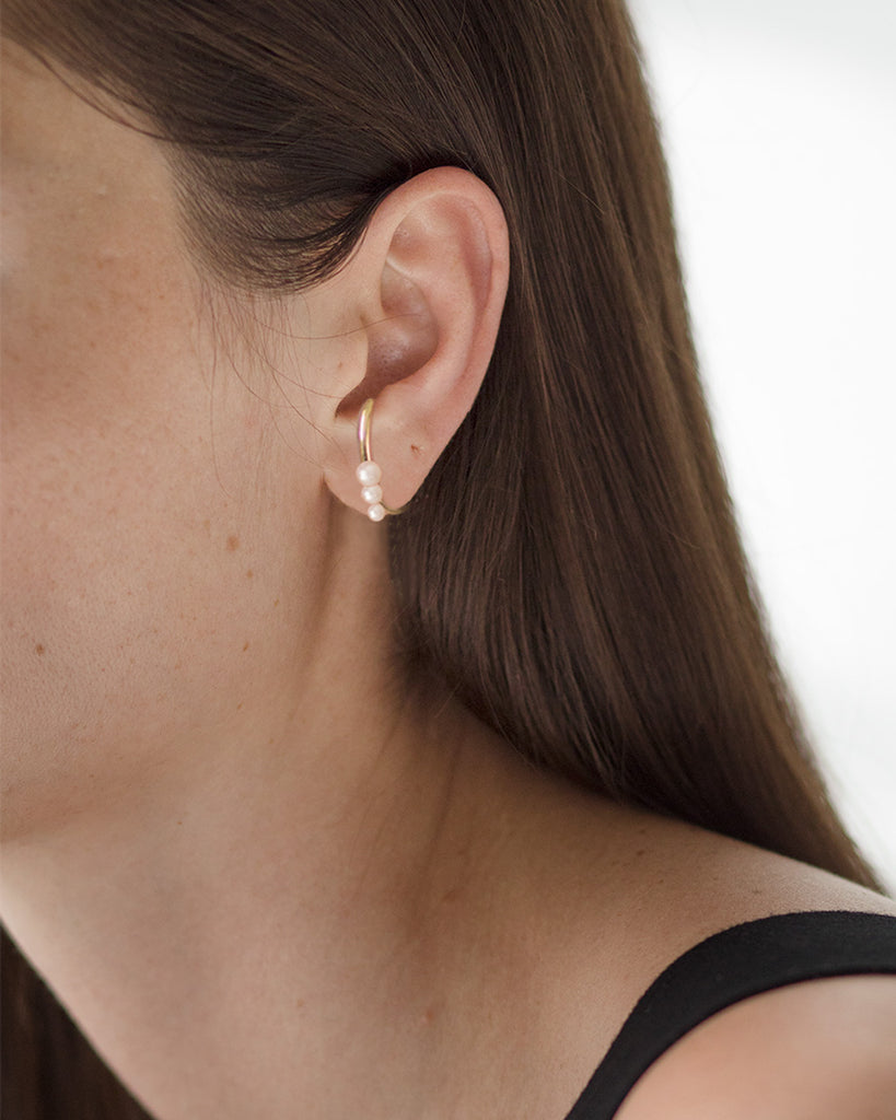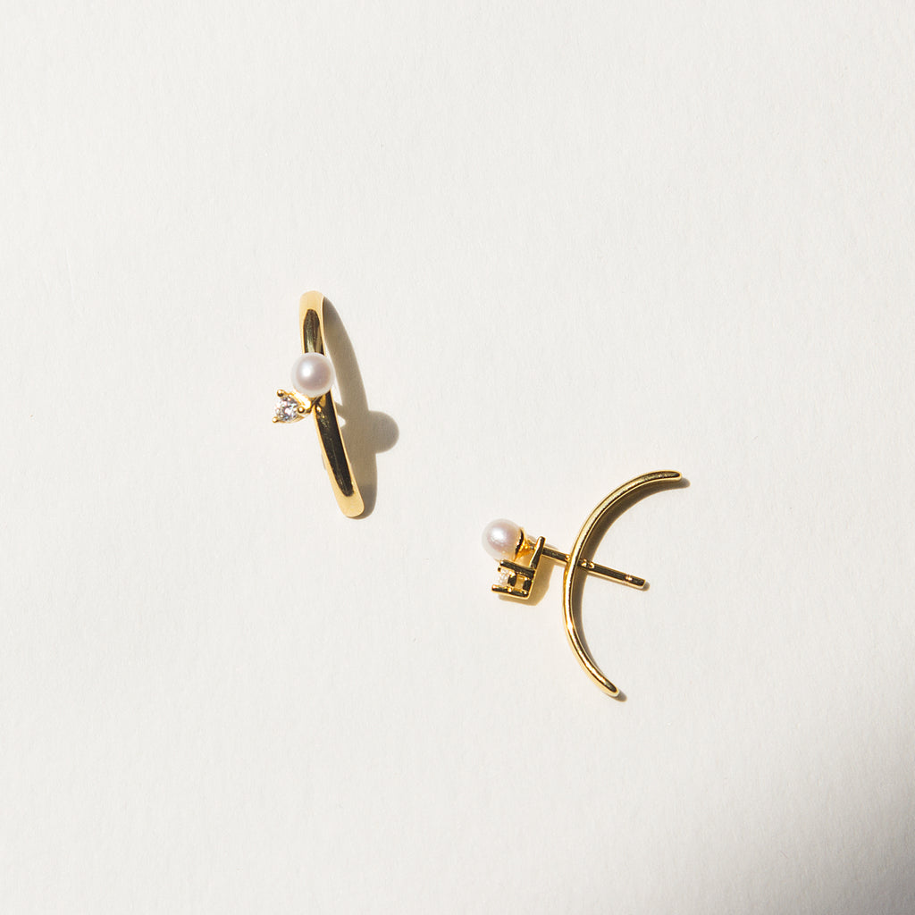 I'm bias to wearing them with the Emerald Cut Studs because it reminds me of my mother's ring. But I also love it with the Solitaire Studs and Petite Pearl Studs.