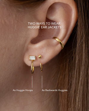 The Huggie Ear Jackets are the most versatile and creative ear jackets. With their open hoop design, they're a fresh way to create one-of-a-kind earring looks when attached behind the lobe or in front with your favorite studs.