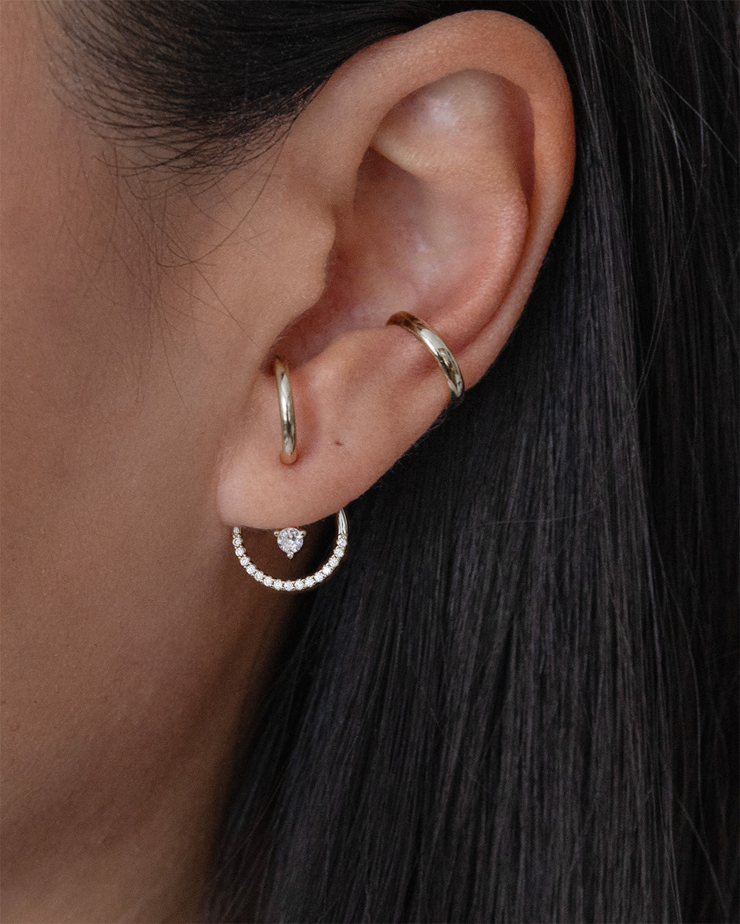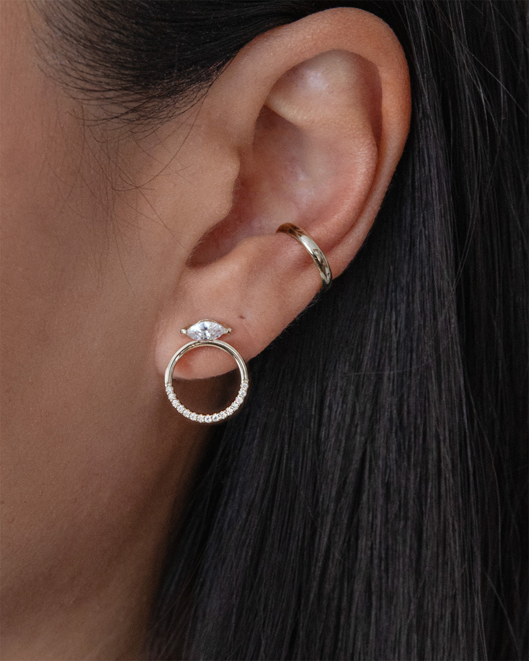 We reimagined our best selling Circle Hoop Ear Jackets with the extra sparkle of Pavé gems. These forward facing hoops are a minimalist's dream. Modern, versatile and perfect for layering with other ear jackets, they're a fresh way to wear hoops.