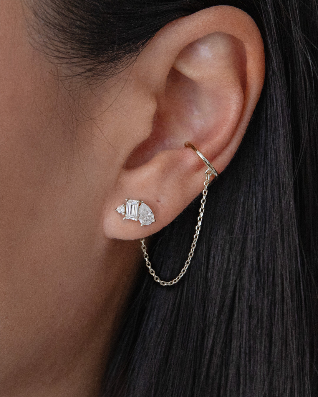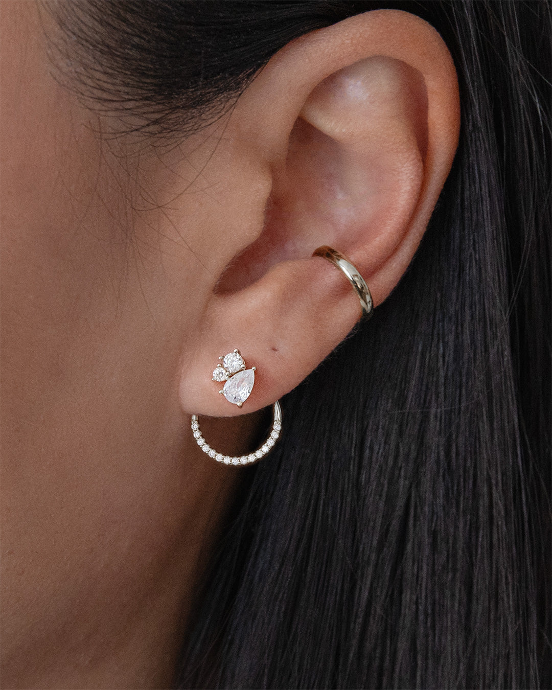 A special addition to your Earring Capsule to elevate your look. Cluster the Pear Ear Jackets with your favorite studs and ear jackets to create unique, and one of kind statement studs.
