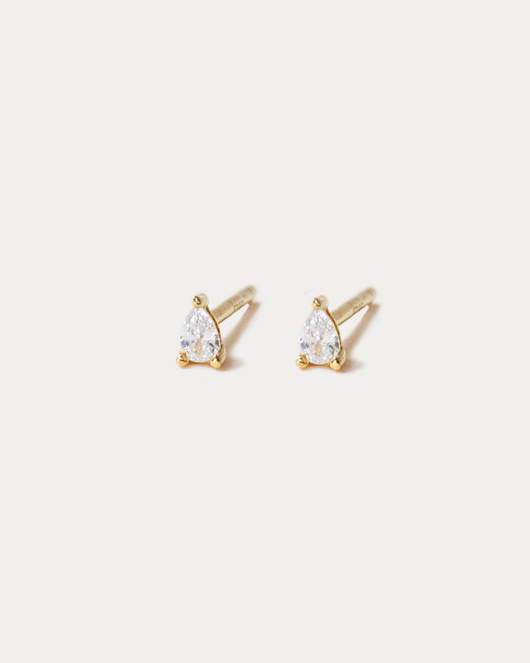 To celebrate our 7th birthday (*happy tears*), we designed these limited edition teardrop-shaped Mini Pear Studs, a distinct silhouette that adds the pearfect glint of sparkle to your earring look.