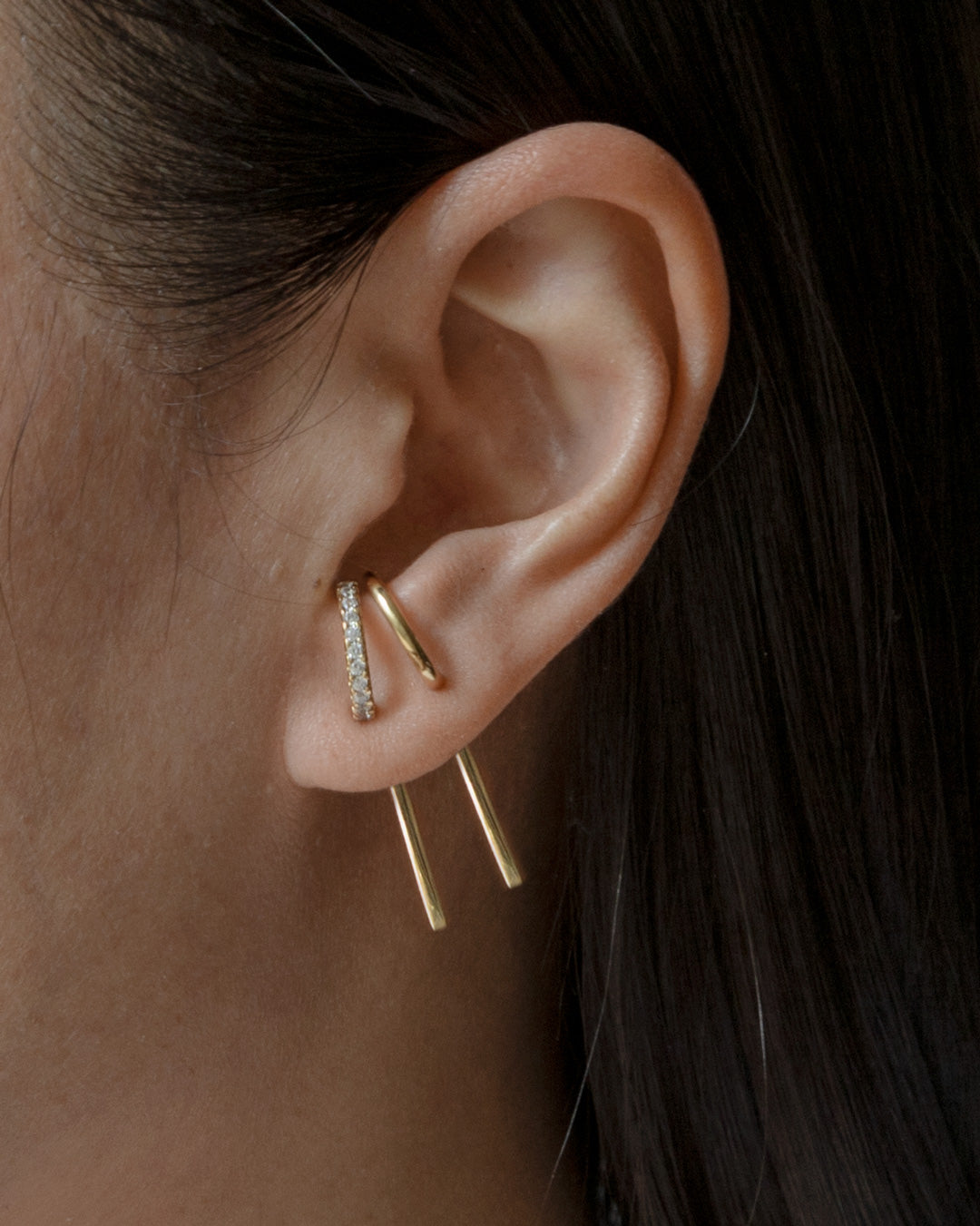 Our collection is custom designed by us. We obsess over proportions and details so all earring studs and jackets fit together perfectly. It means you can mix, match, and layer with effortless creativity.
