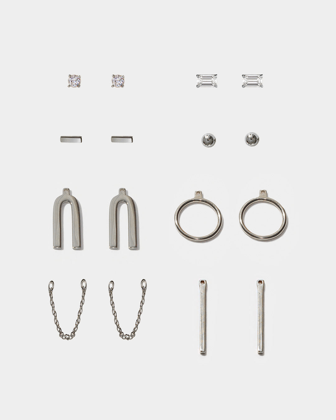 The combinations are endless with this Earring Capsule. This set includes all 8 original essentials designs in sterling silver: